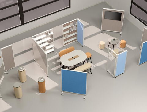 cascando / garderoben, tische, whiteboards, sitzelemente, akustische lösungen